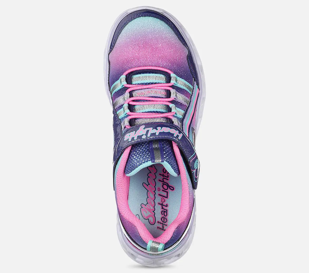 Skechers S Lights Heart Lights – Rainbow Lux sopii tytölle, joka on ihastunut värikkäisiin kenkiin. Kengän välipohjaan on kaiverrettu kirkkaita sydämiä. Sydämet syttyvät, kun lapsi kävelee. Valot voidaan sammuttaa ja sytyttää tarranauhan avulla.