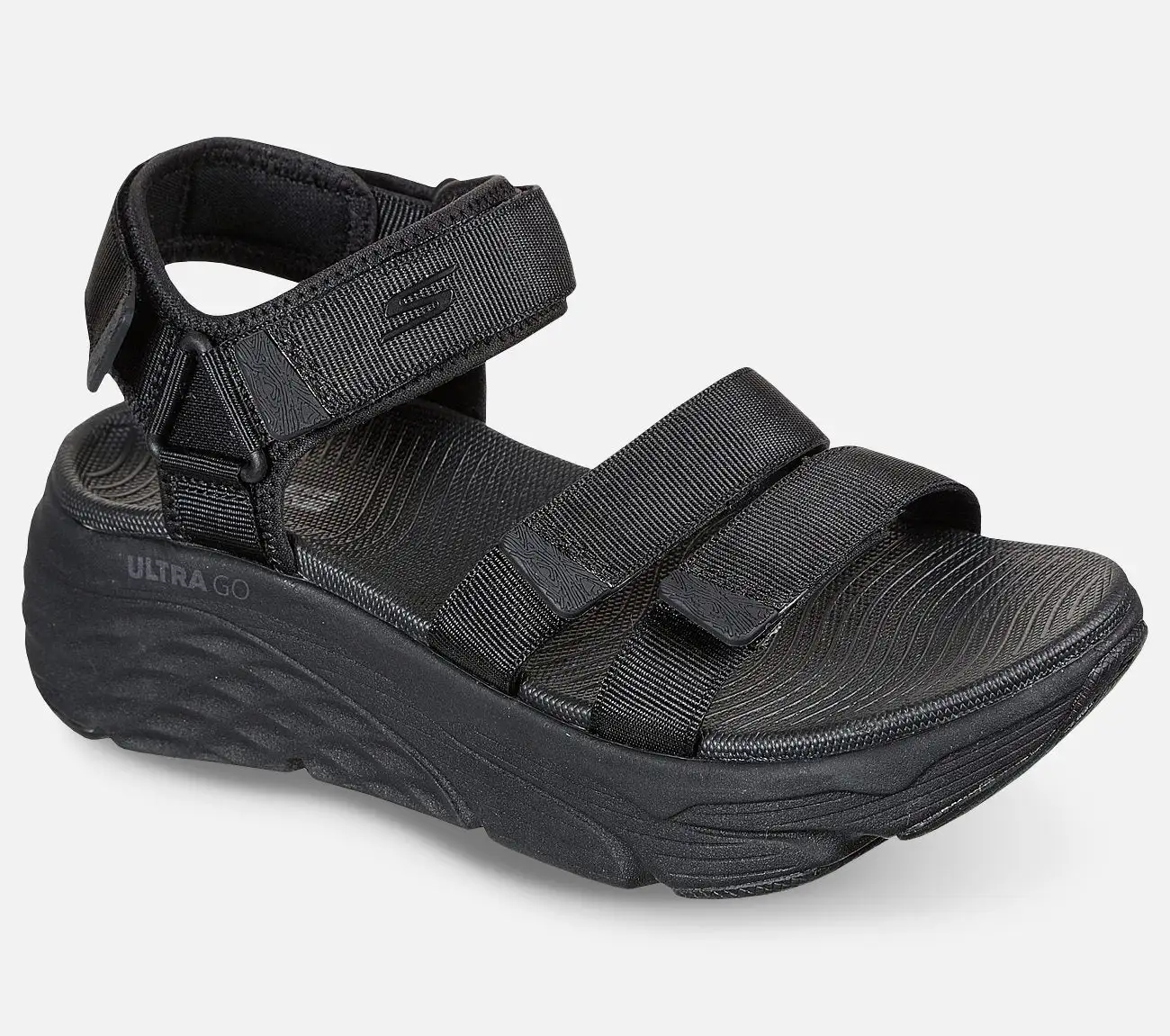 Skechers Max Cushioning – Lured -sandaaleissa on erinomainen iskunvaimennus. Näillä sandaaleilla et joudu tinkimään mukavuudesta pidemmilläkään kävelylenkeillä. Sandaaleissa on korkea iskunvaimennus, mikä tekee askelluksesta kevyen ja joustavan.