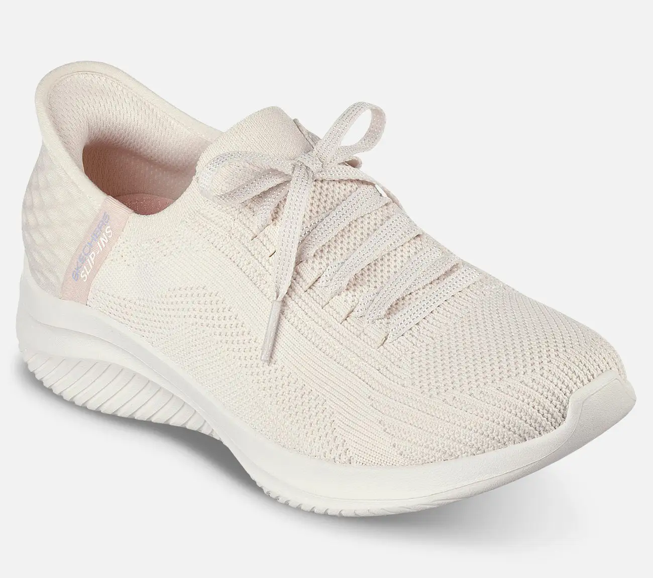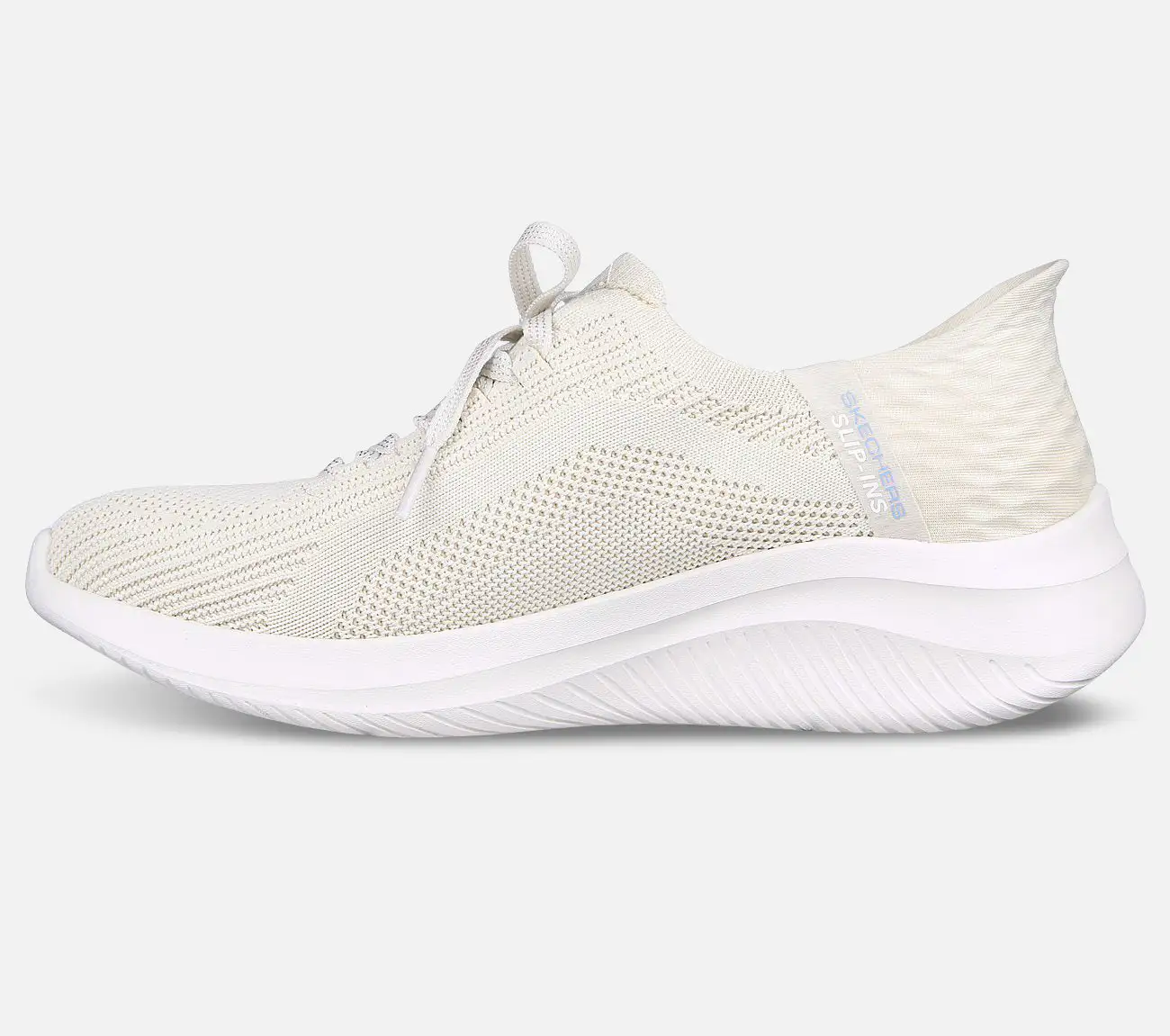 Slip-ins-ominaisuuden ansiosta kantapää muotoutuu jalan mukaan ja antaa hyvän vakauden. Se on Skechers-kenkien ainutlaatuinen ominaisuus, jonka ansiosta kengät voi sujauttaa jalkaan myös ilman käsiä.
